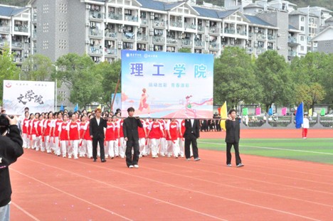 11 月 11 日,张家界学院校园田径场旌旗招展、气氛热烈,第十五届大学生体育文化节暨第十一届教职工趣味运动会开幕式在此盛大启幕。整场仪式充分展现了学校师生积极向上、奋发有为的精神风貌,为校园注入了澎湃的青春活力。
